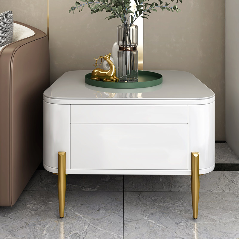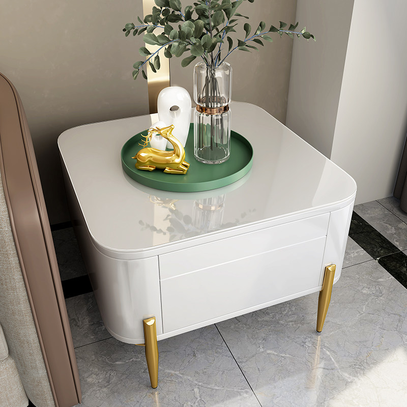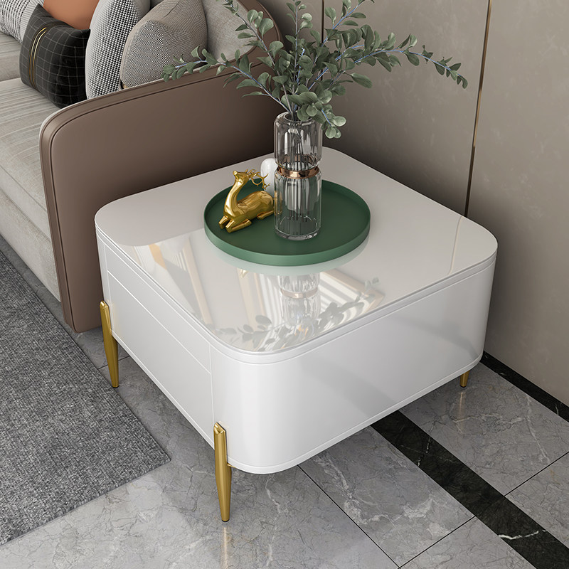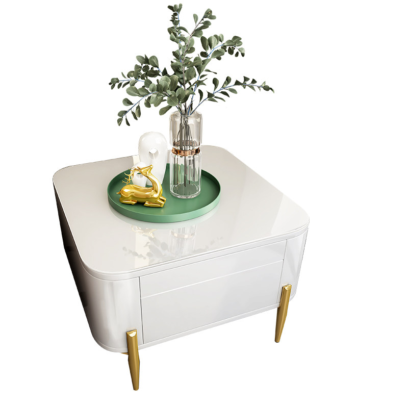 Side table simple light luxury modern sofa corner white tempered glass side cabinet small apartment square small coffee table