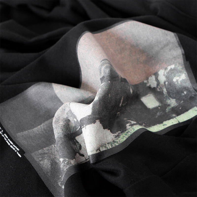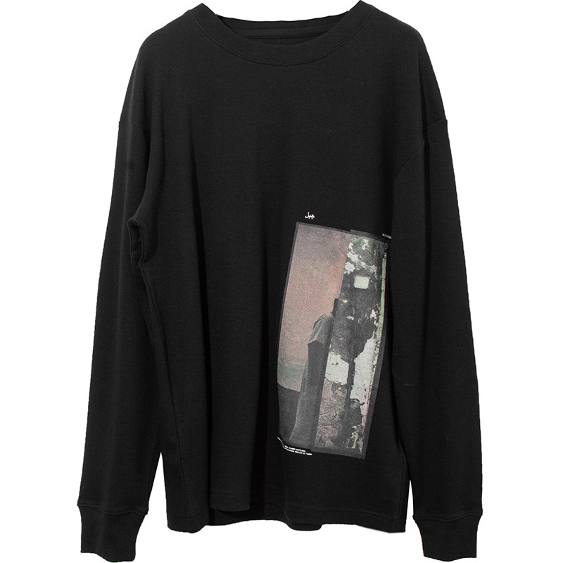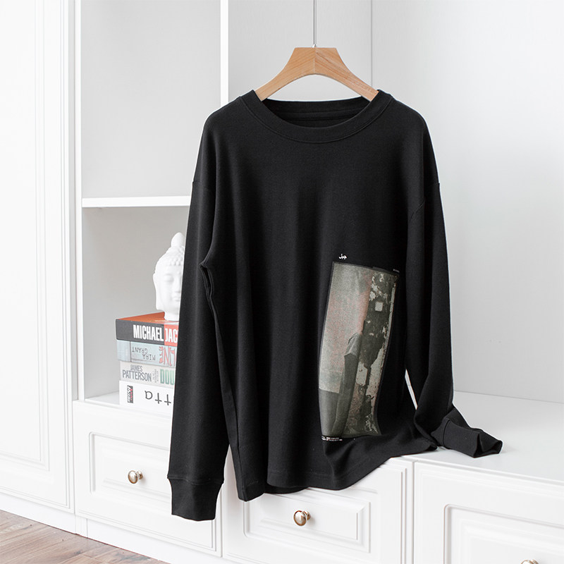 Delicious soft Egyptian all - cotton abstract digital printing round - collar tube languish shoulder long sleeve T - shirt black beige