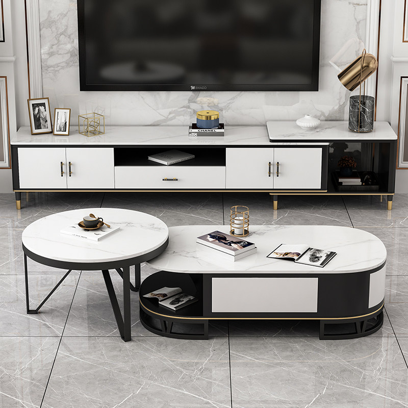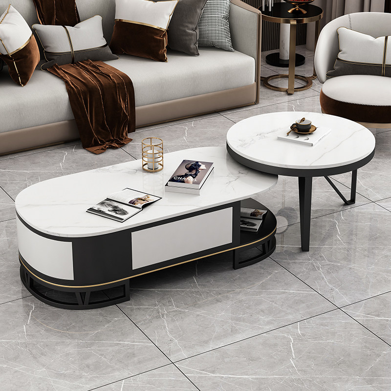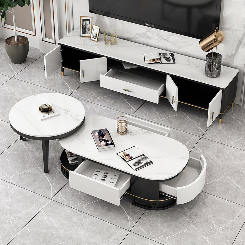 Slate coffee table TV cabinet combination Italian light luxury Italian modern minimalist oval small living room gray