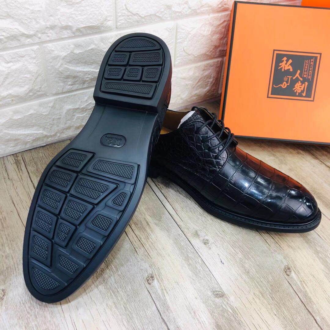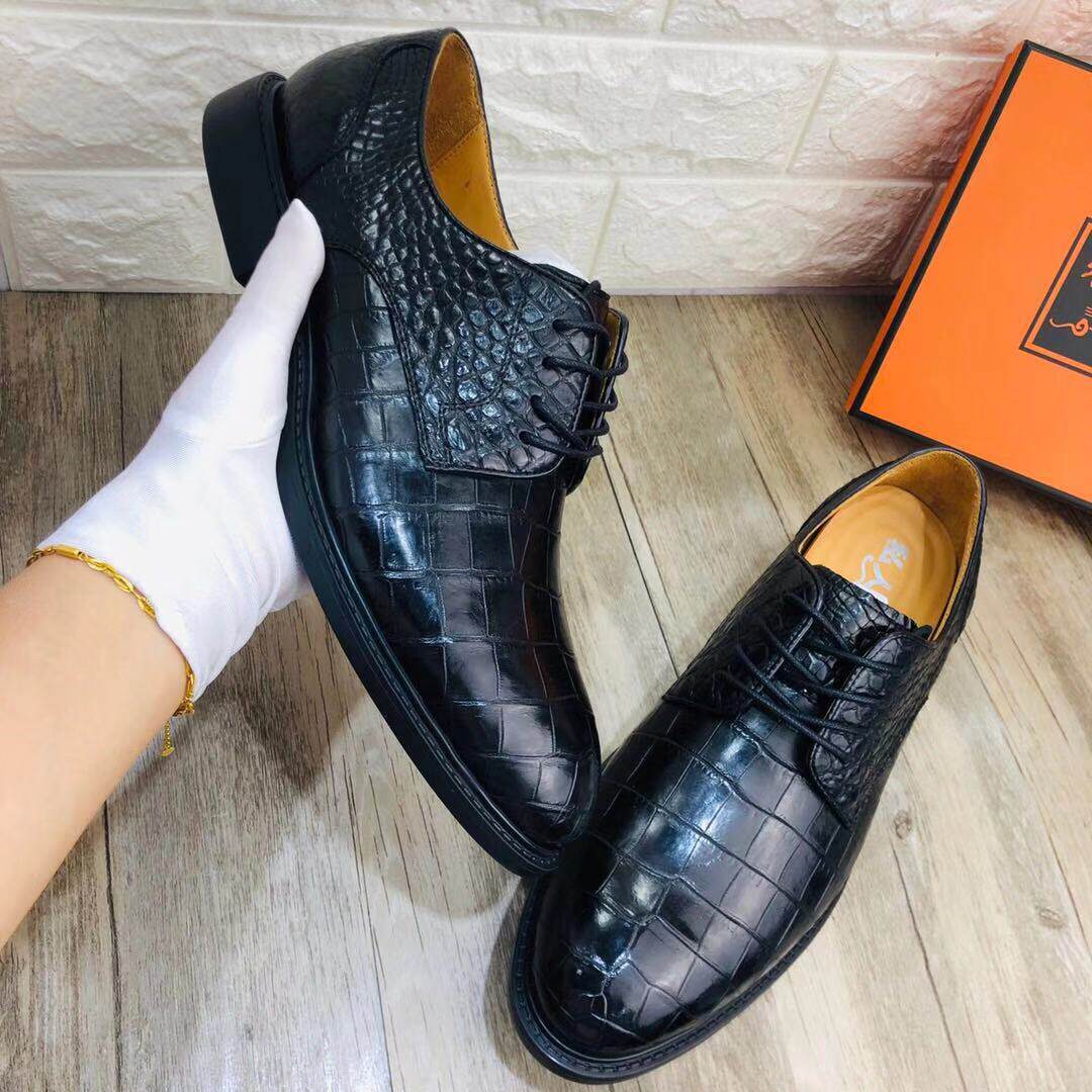 Thai crocodile leather shoes men's formal wear business low-heeled single shoes casual ultra-light pointed toe flat heel rubber soft sole handmade