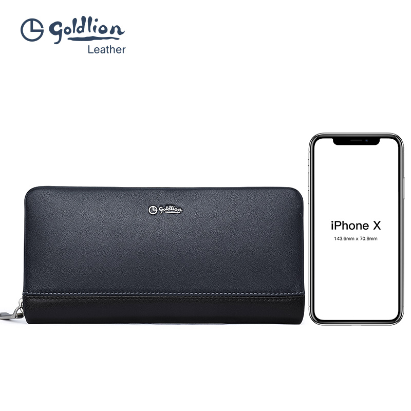 Kinley to 2022 new pull-chain wallet Male genuine leather Long version Fashion business Handbags casual Coloured handbag Chauder