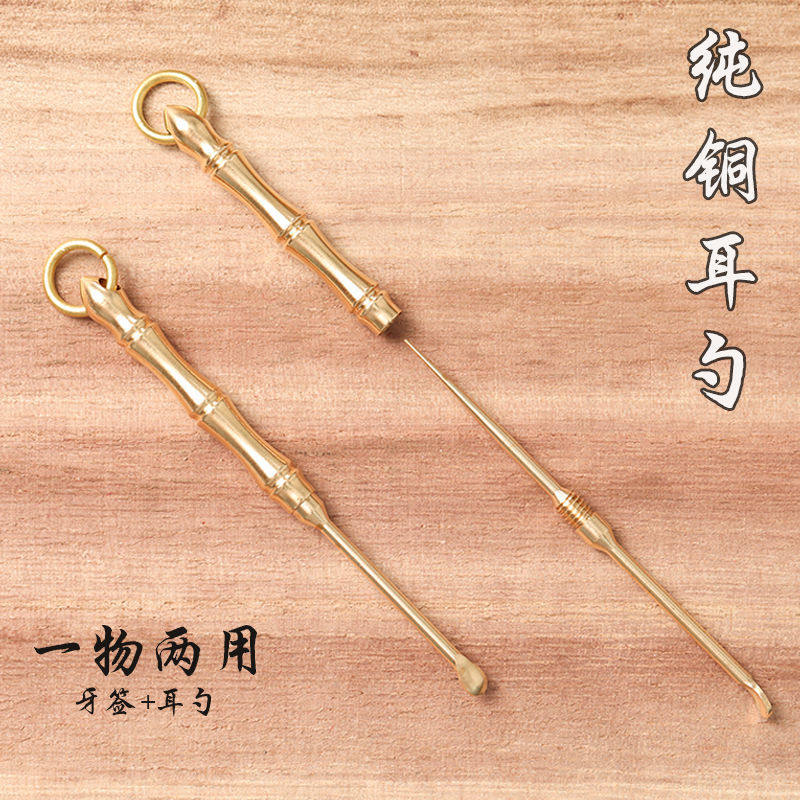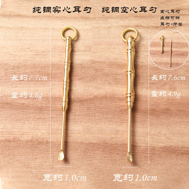 Pure copper toothpick ear spoon brass buckle ear spoon ear tool mobile phone pendant ear spoon artifact key pendant ear stick