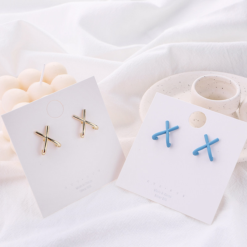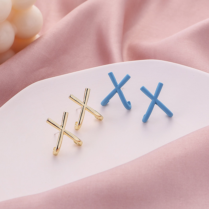 (218) Blue X-shaped silver needle (218) Blue X-shaped ear clip (218) Gold X-shaped silver needle (218) Gold X-shaped ear clip