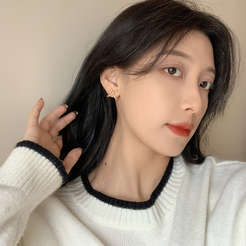 Cross earrings female niche design sense high-end Korean temperament net red personality ear pin earrings without ear piercing ear clip female