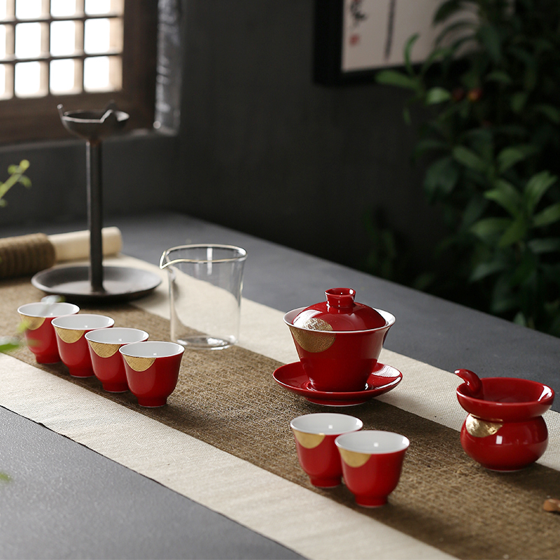 Matsufa 9-head Fu Fu Set Kung Fu Tea Set Festive Cover Bowl Kung Fu Teacup