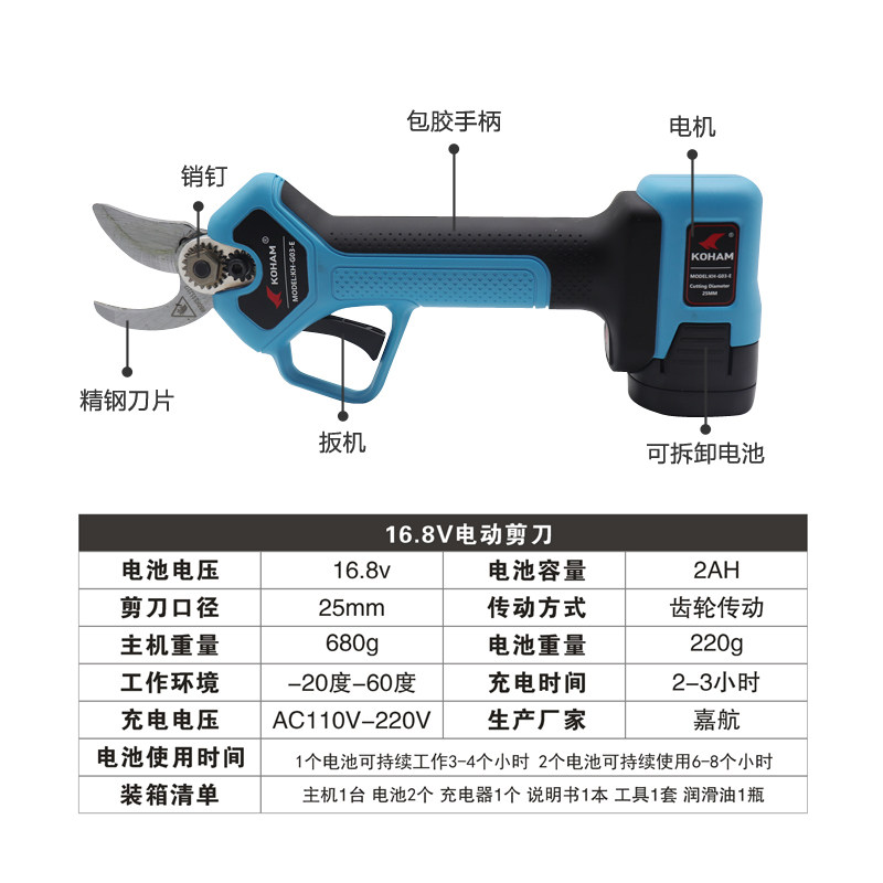 Jiahang Lithium Battery Electric Scissors Fruit Tree Repair Branch Cut Charge Scissors Garden Wireless Scissors Apple Tree Electric Shears