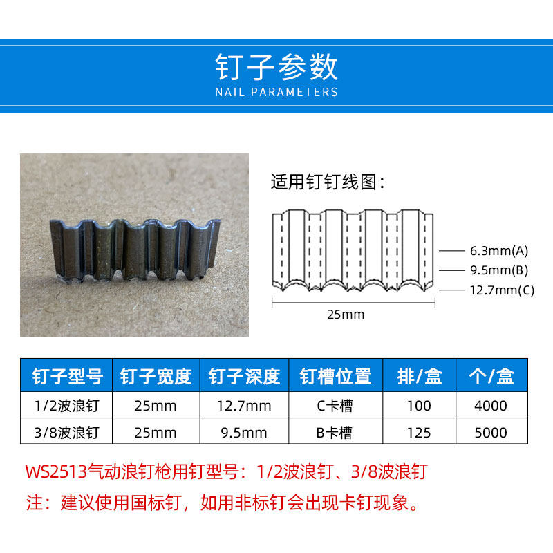 Mete WS 2513 pneumatic nail ribbon wave wave wave wave ripple joint plug