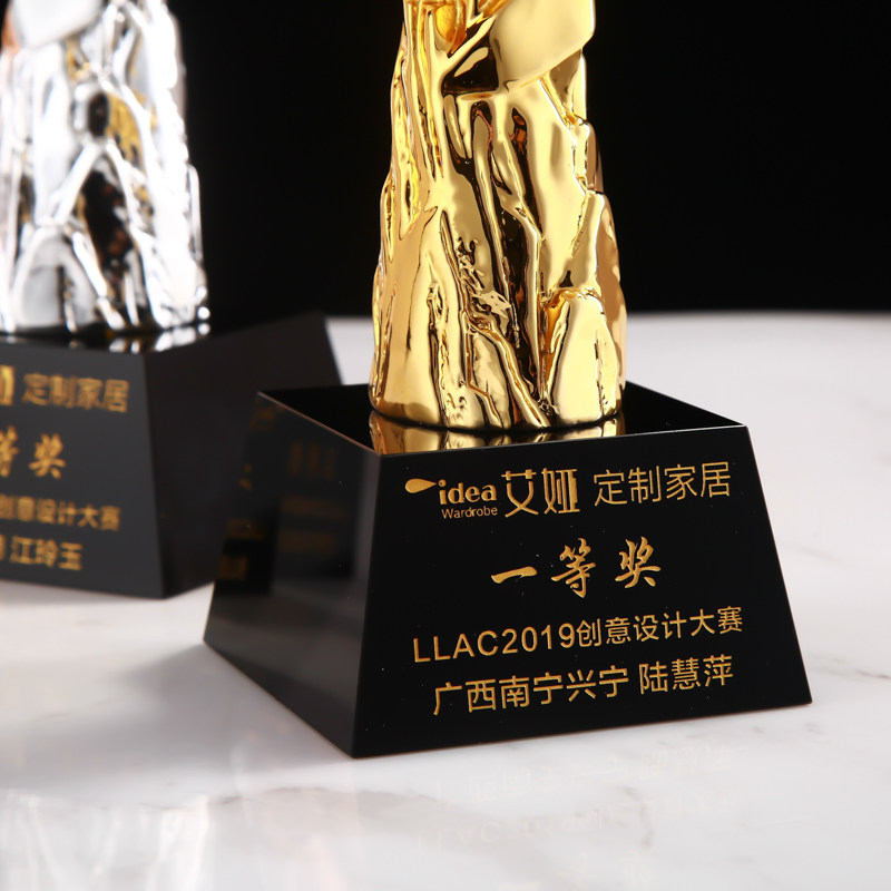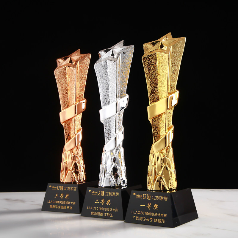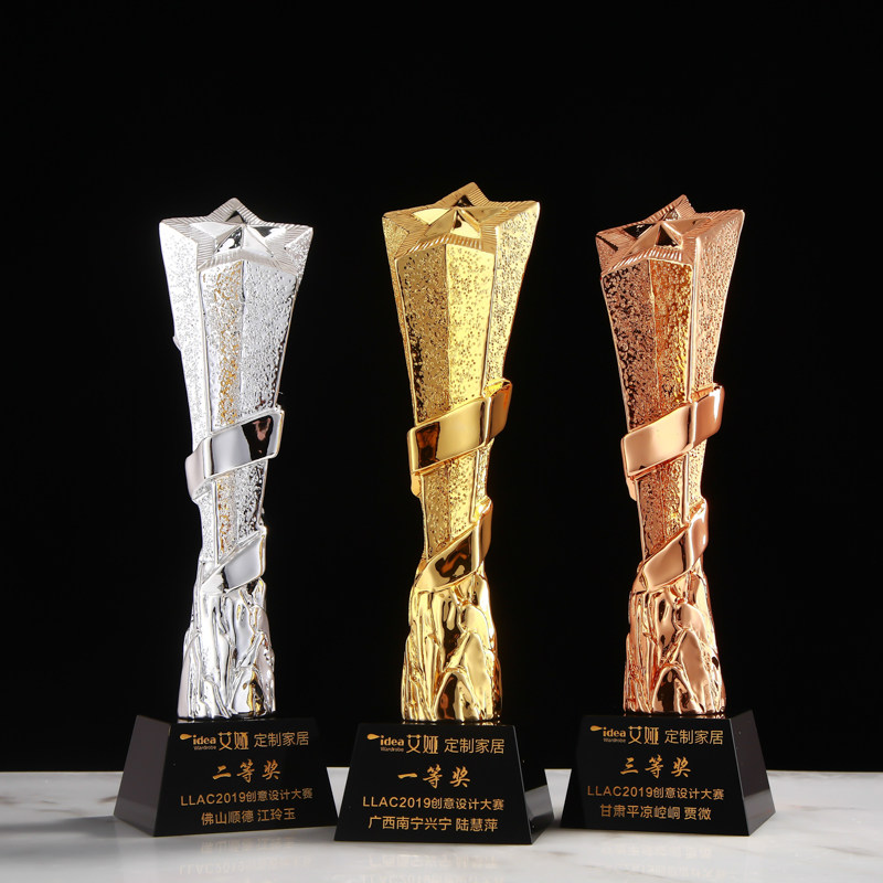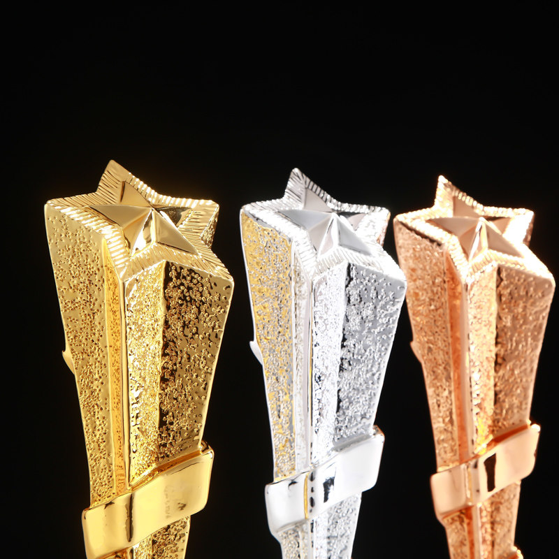 Pentagram gold and silver bronze resin crystal trophy customized to make the annual meeting of the outstanding employees of the creative metal