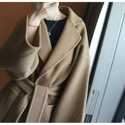 ROUJE POWER high-end double-sided cashmere coat 2021 autumn and winter new water rippling medium long woolen coat