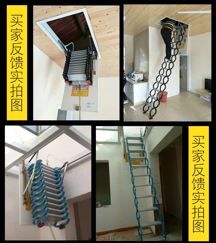 Automatic attic telescopic ladder Villa indoor hole Invisible duplex lifting stretch ladder Household folding stairs