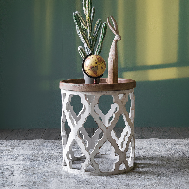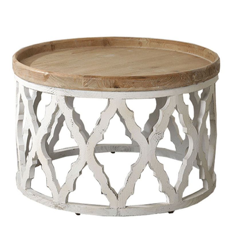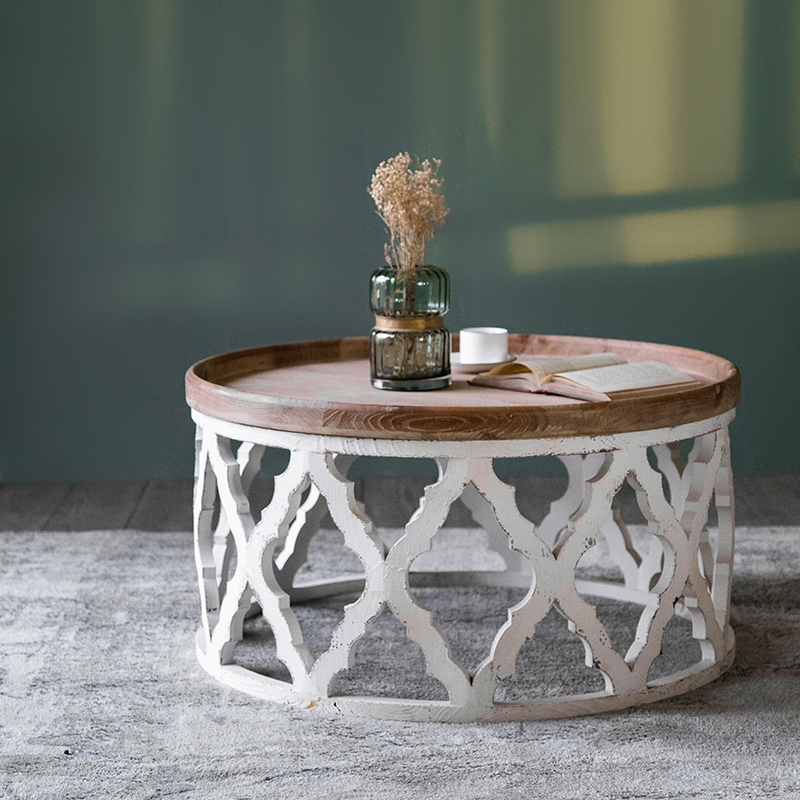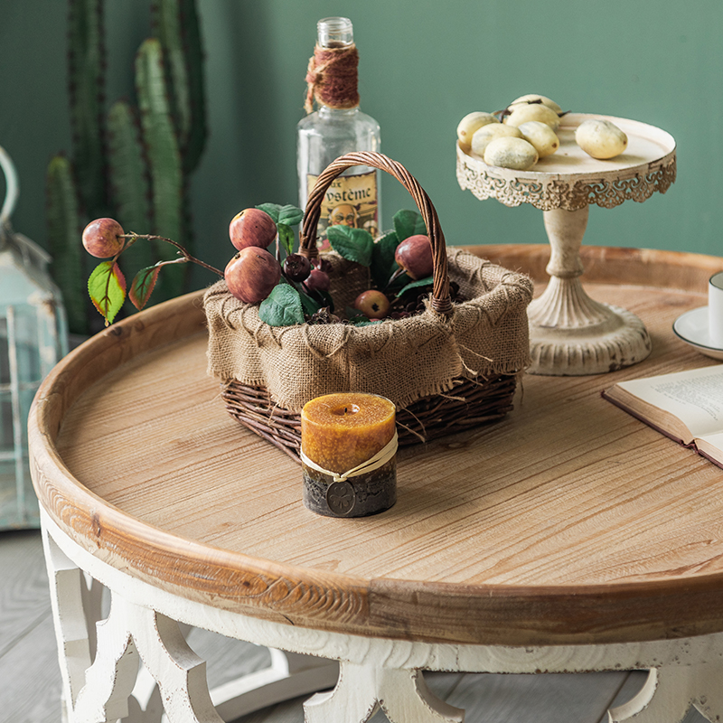 Retro American coffee table solid wood living room sofa side table homestay round coffee table old coffee table low round table home