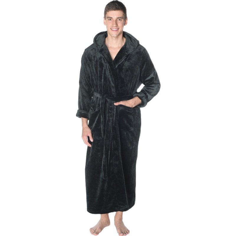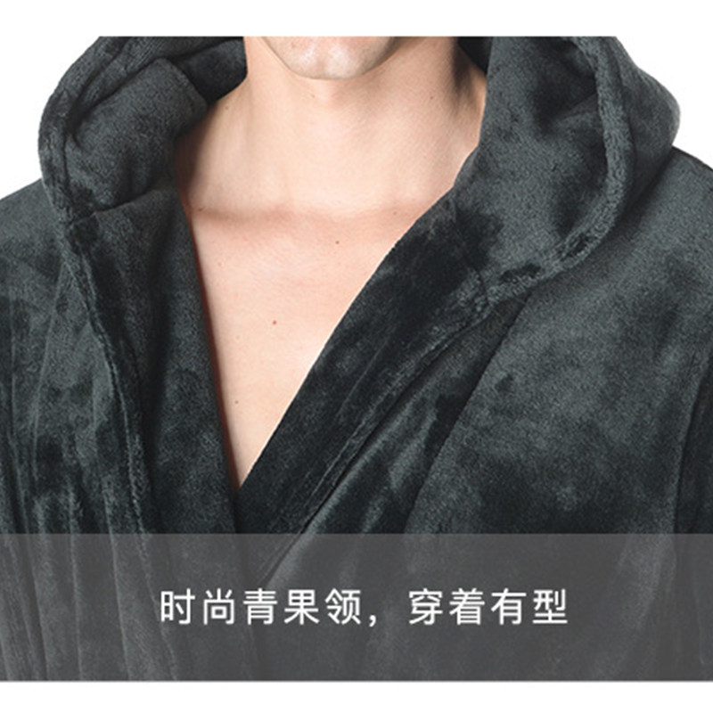 Men's sleepwear autumn and winter style flannel suede cap thickened with suede dressing gowns plus fattening up the code long version bathrobe home clothes