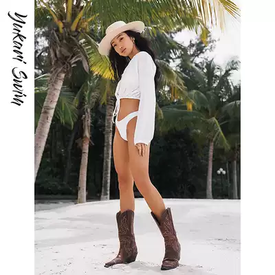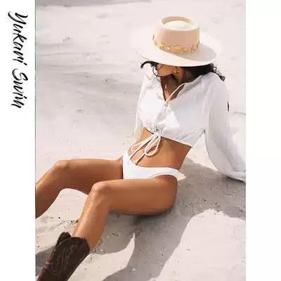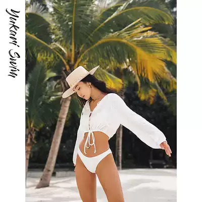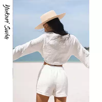 Yukari yachi open-belly long-sleeved top suit loose lace-up beach shorts jacket 2021 new women