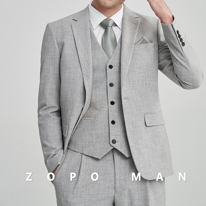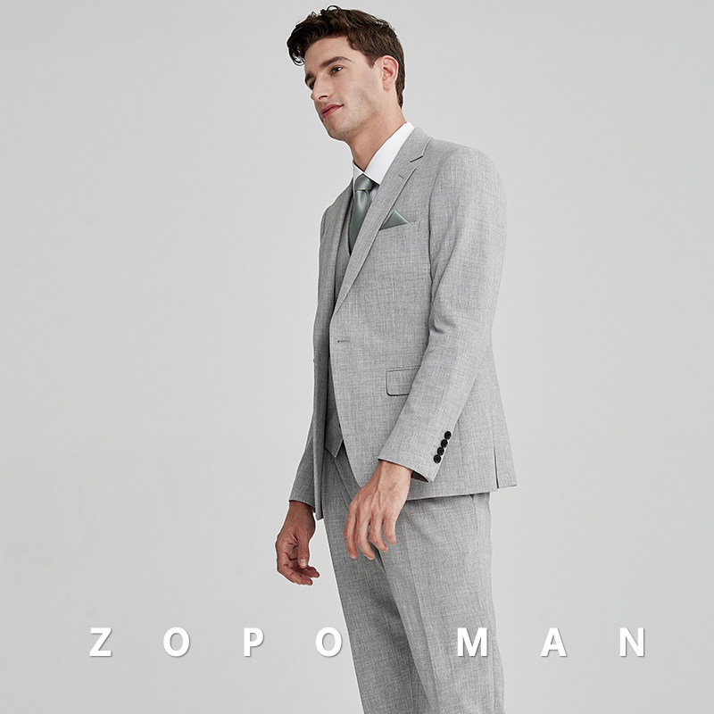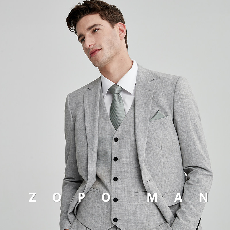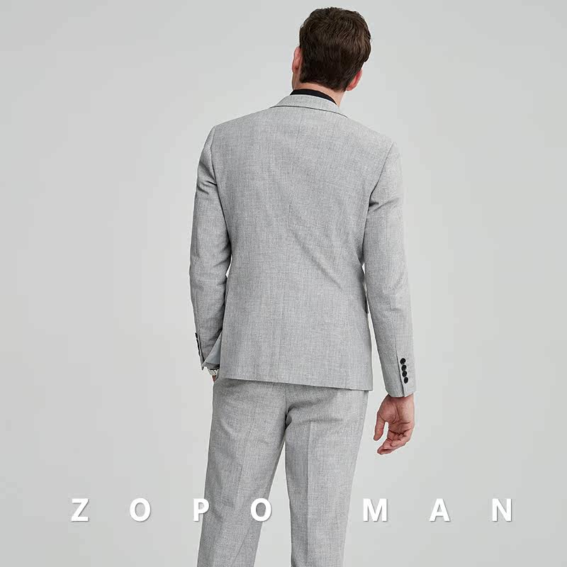 zopo men's gray casual spring business suit wedding dress slim wedding dress formal dress work suit suit