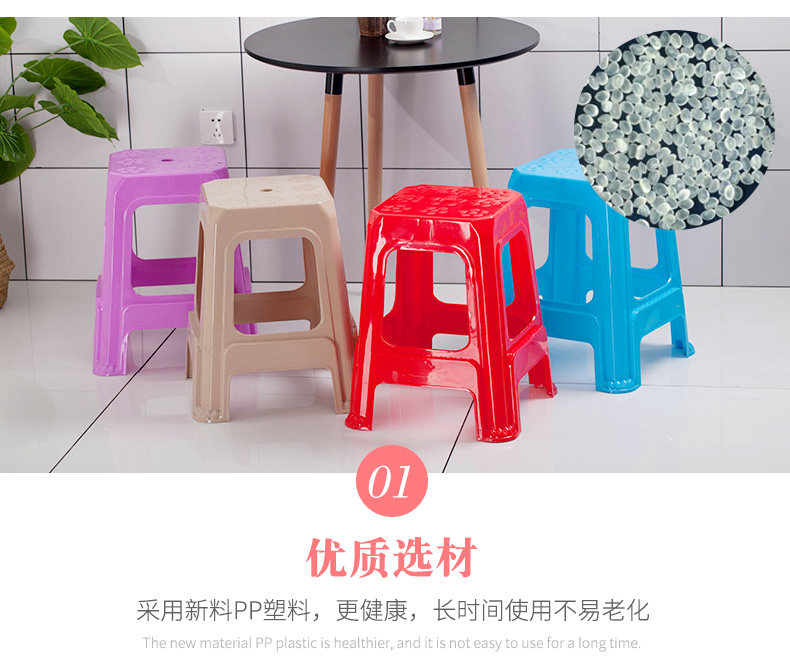 Anti-slip thickened plastic stool living room adult plastic chair round stool table high bench for shoe changing shoes glue square stool for home