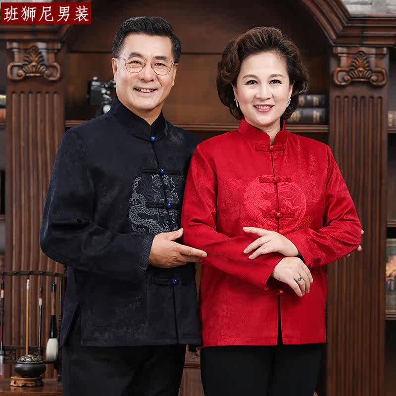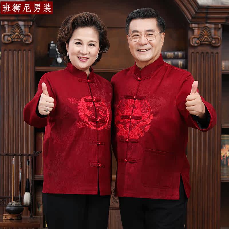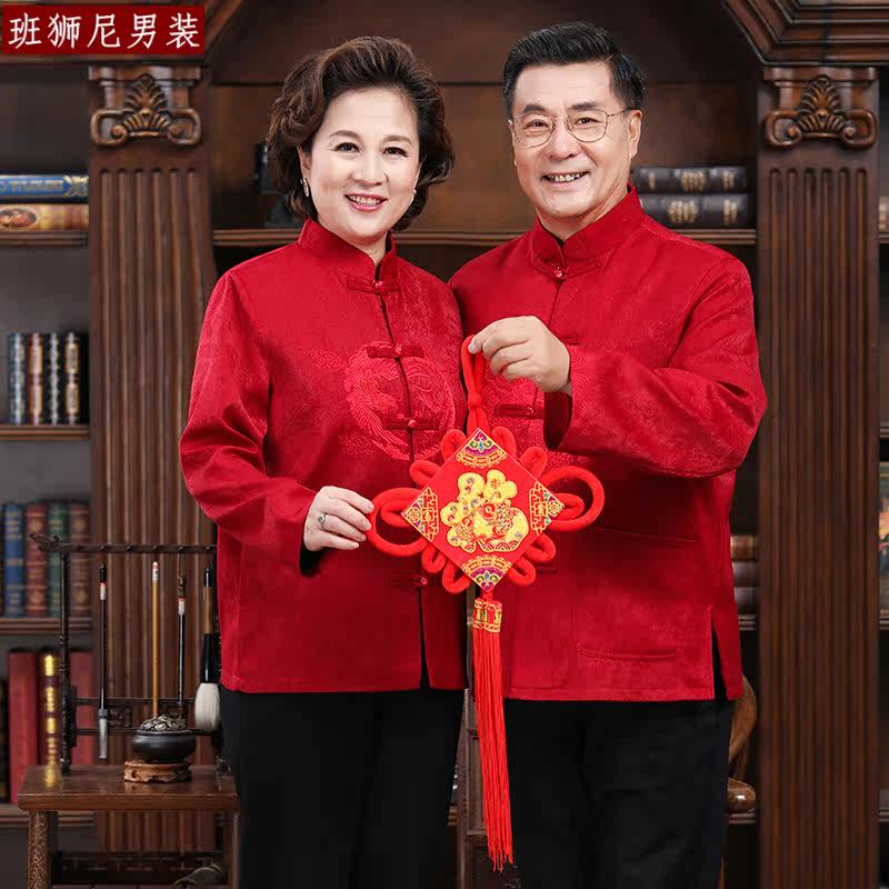 Couple dress Tang suit men and women plus velvet thickening middle-aged and elderly birthday birthday grandparents dress old man winter coat