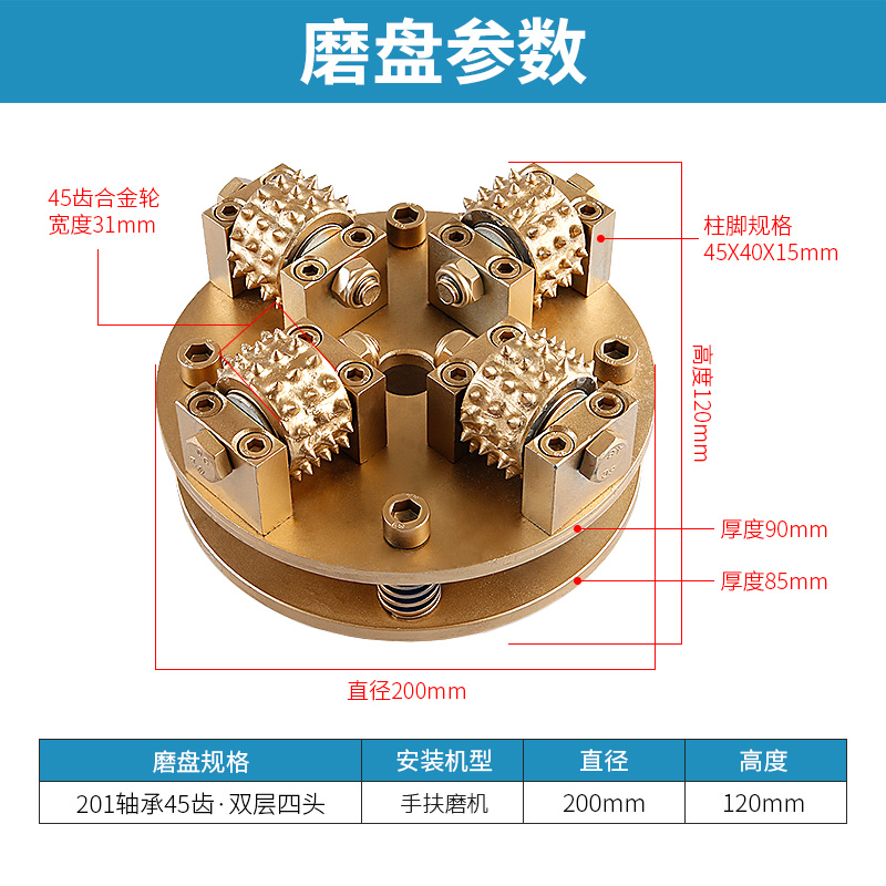 200mm litchi surface grinding disc 201 bearing 45 tooth roller (with bearing)