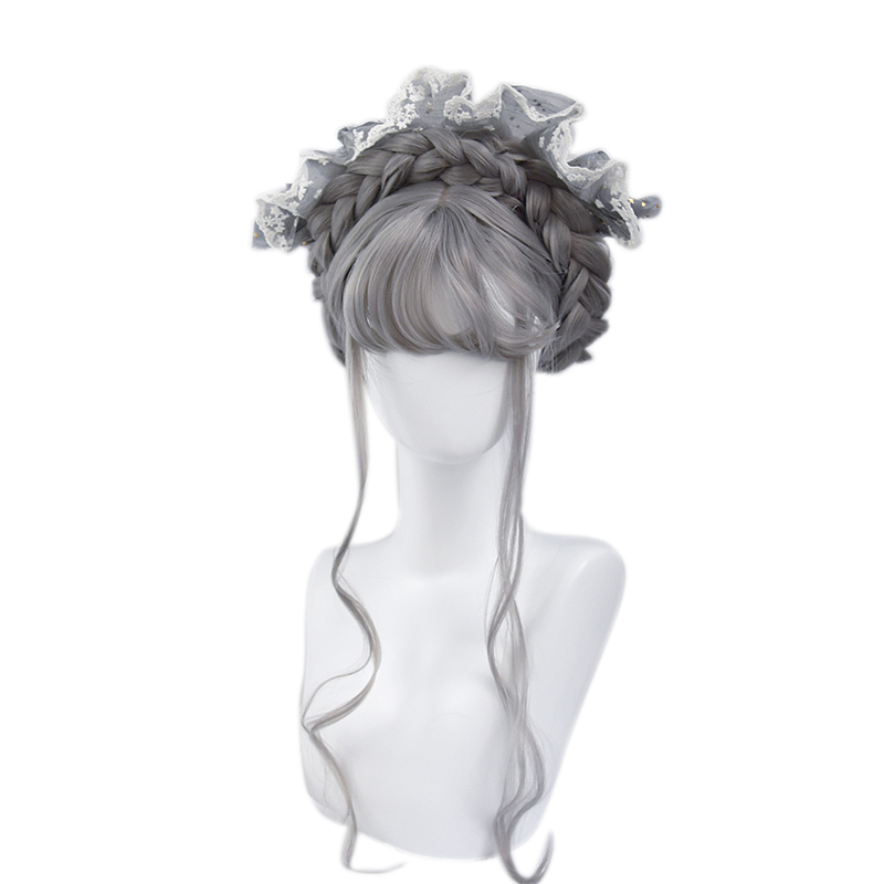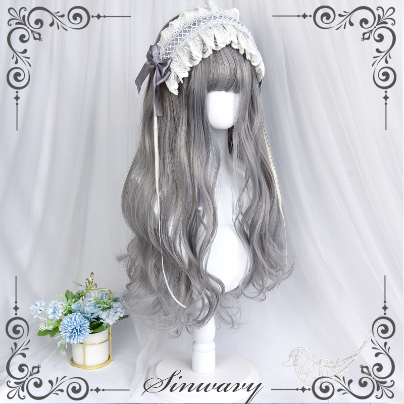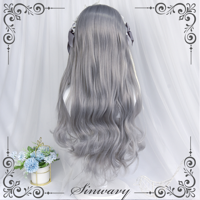 Swanjia-light gray long curly hair Lolita body wig grandma gray temperament wig female