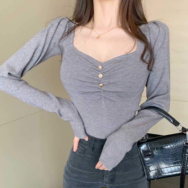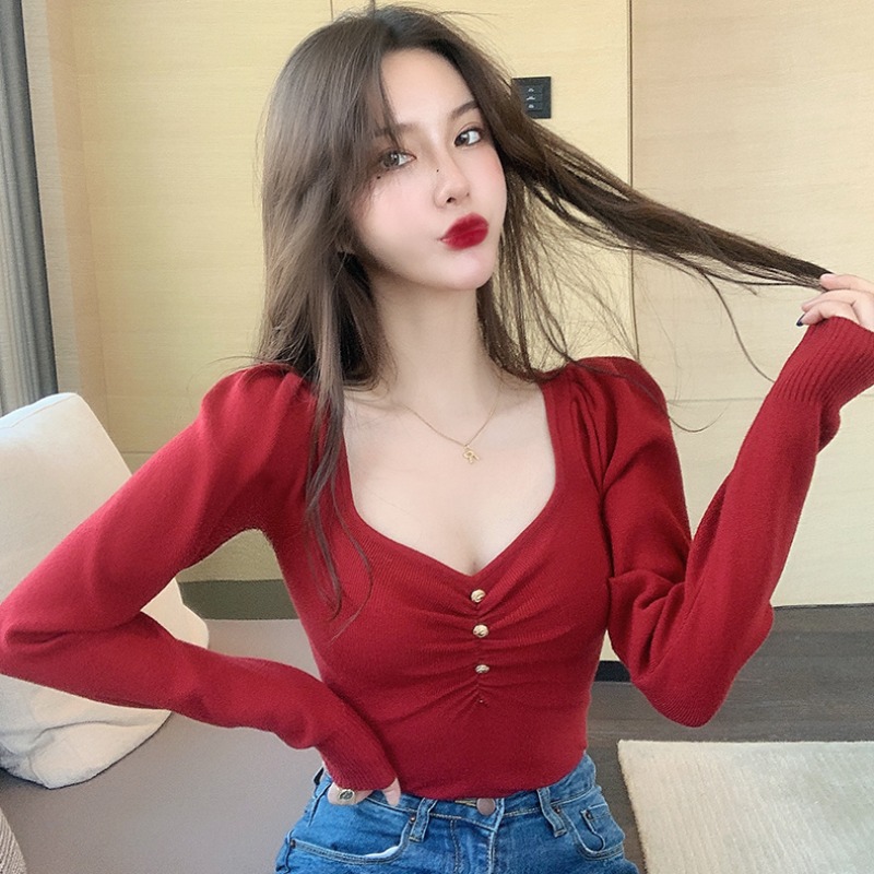 Sanskrit 2022 new hit undershirt female spring Sexy 100 hitch set up with slim long-sleeved knitted blouse