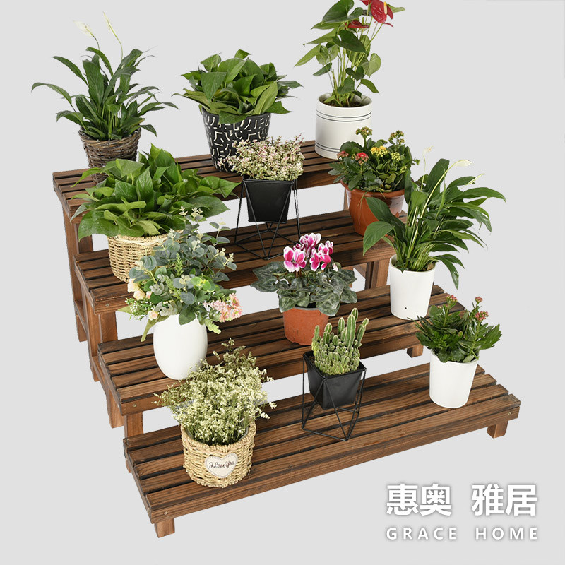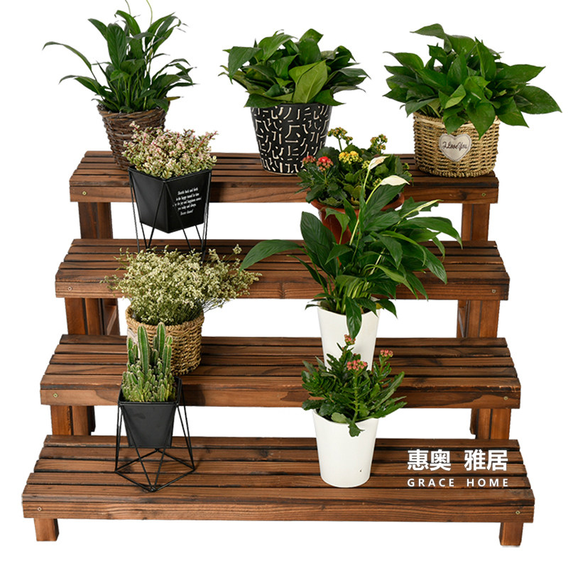 Long stool flower rack shelf balcony special two-layer combination anti-corrosion wood indoor trapezoidal multi-meat shelf layer one