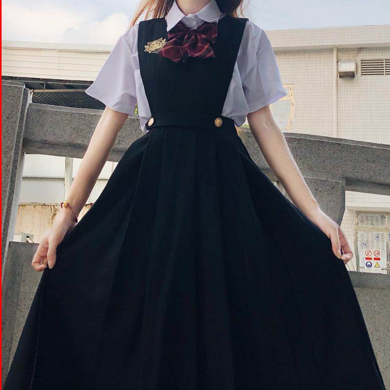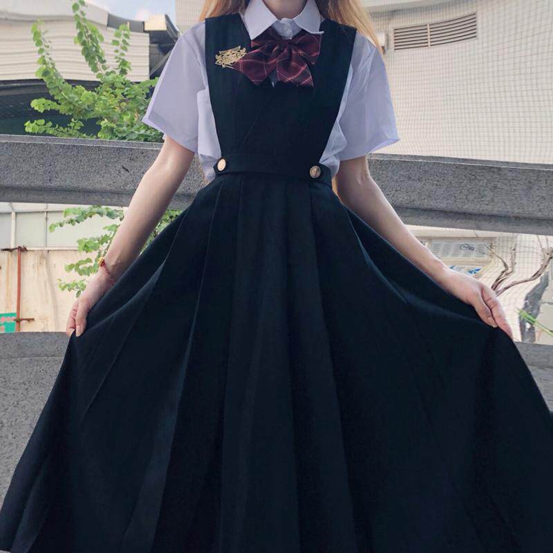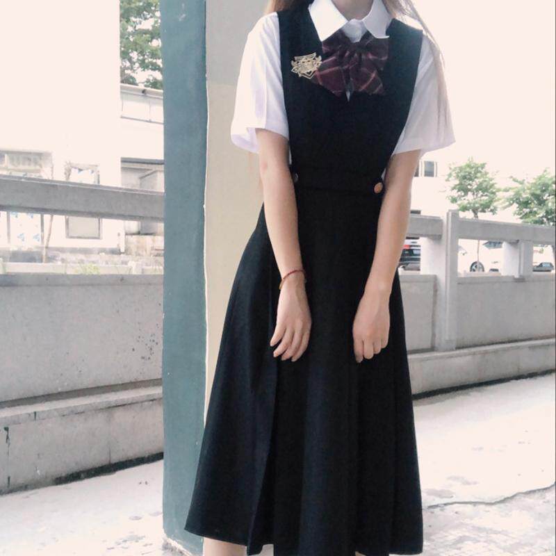 Milk dress pure color jk uniform dress genuine female college female academy wind autumn winter strap dress long autumn suit