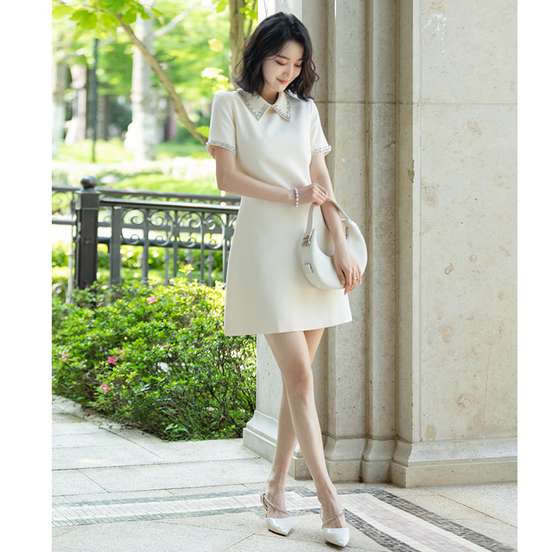 Zhang Nian'en custom niche design first love fashion new white dress slim fit doll collar dress
