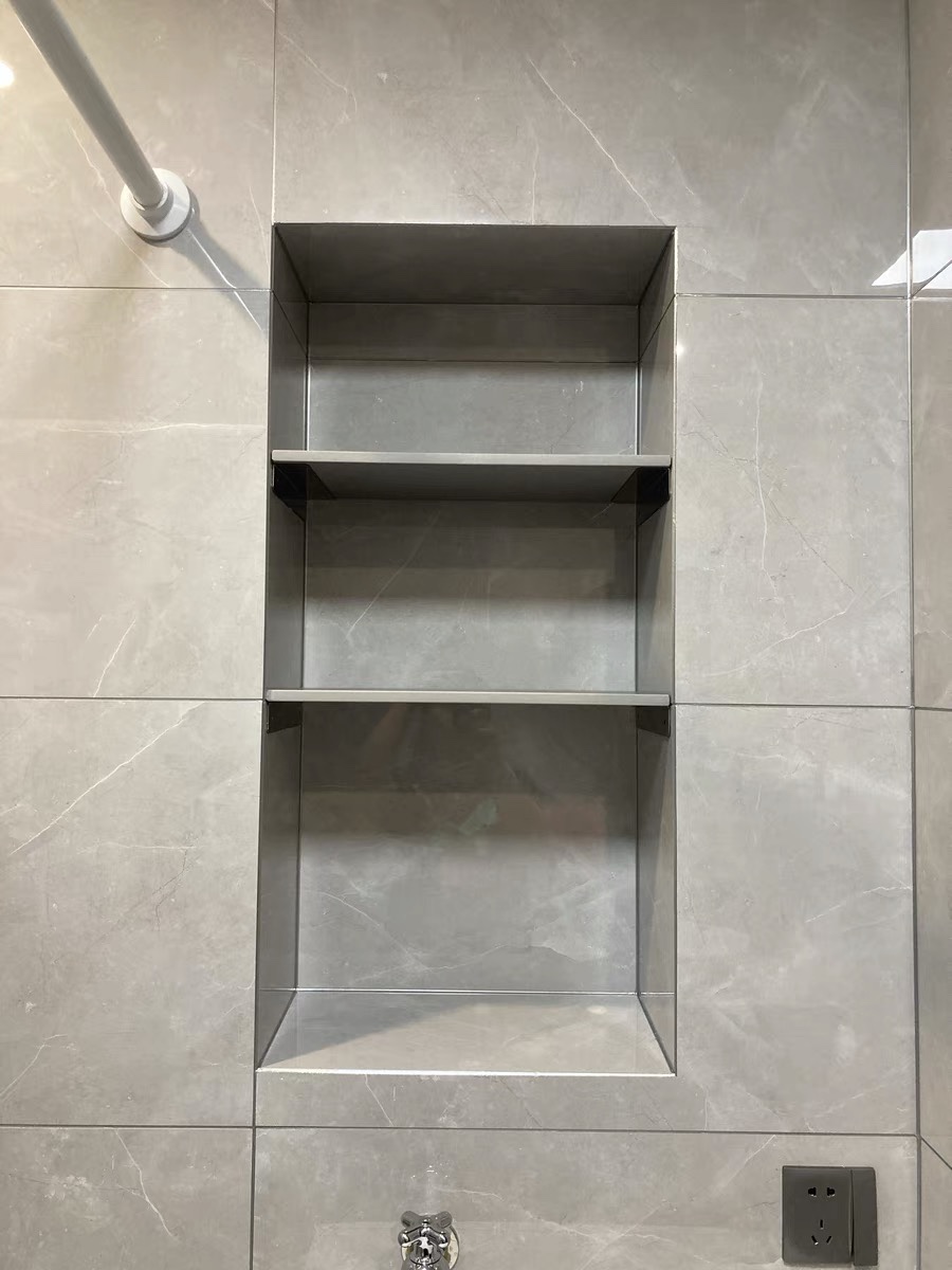 Custom powder room wall shelf marble one word partition bathroom wall hanging storage free punching niche partition