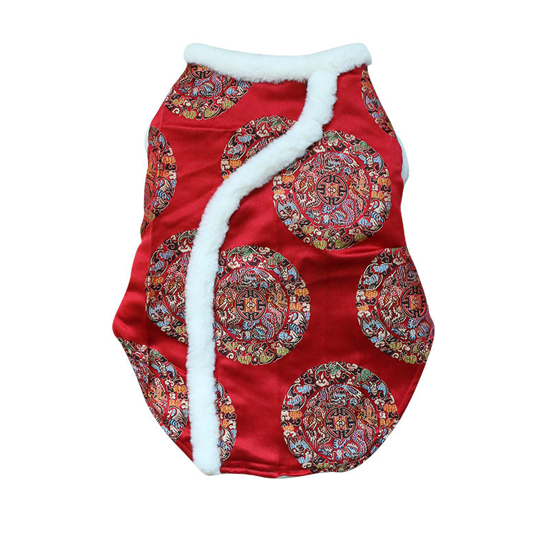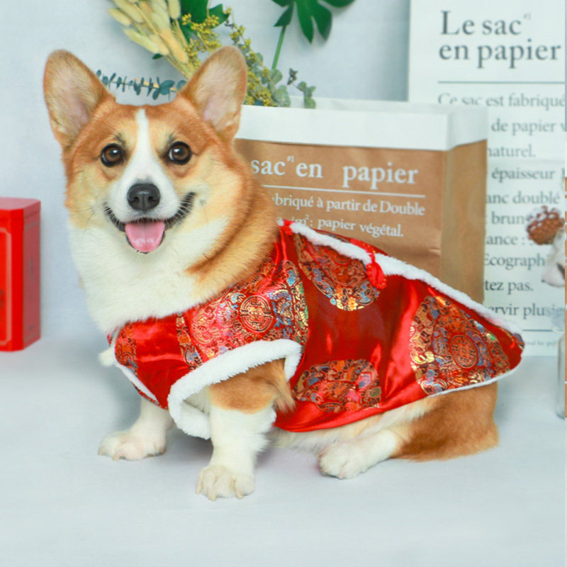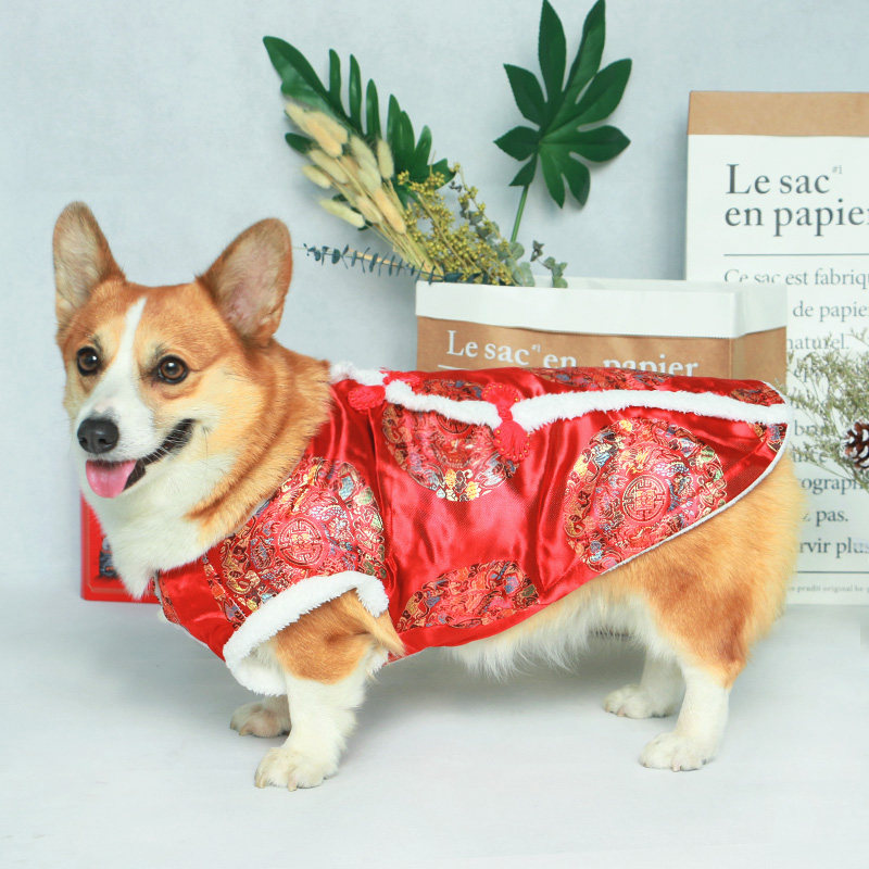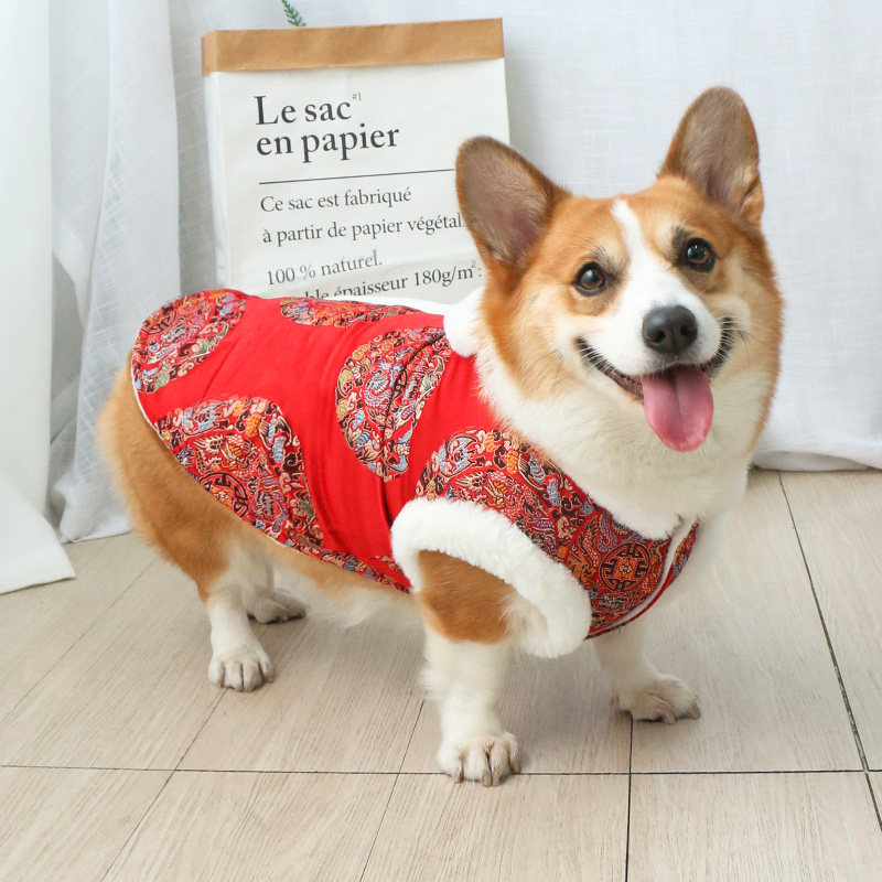 Pet dog New Year's clothes festive cheongsam 2021 new cotton Tang suit corgi vest style winter thick plus velvet tide