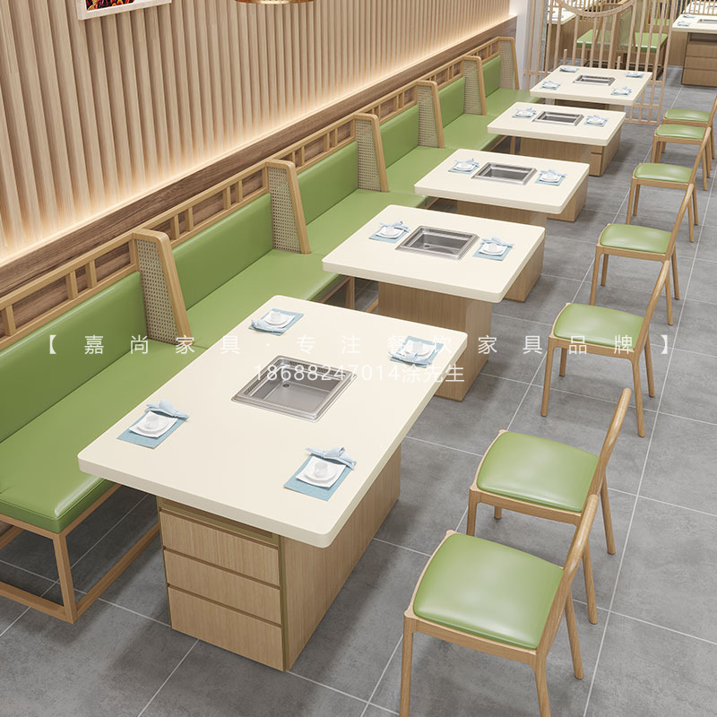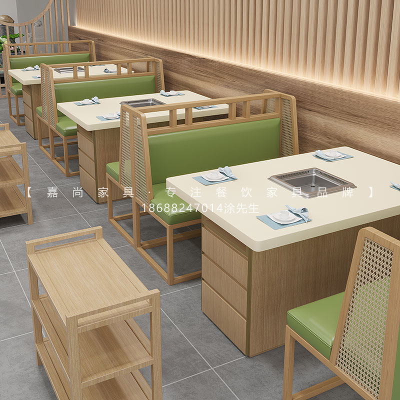 Green Wrought iron wood grain deck Green Wrought Iron Rattan chair Marble long table (120*80) Marble square table (80*80)Marble round table (120*120)Smoke-free equipment Induction cooker