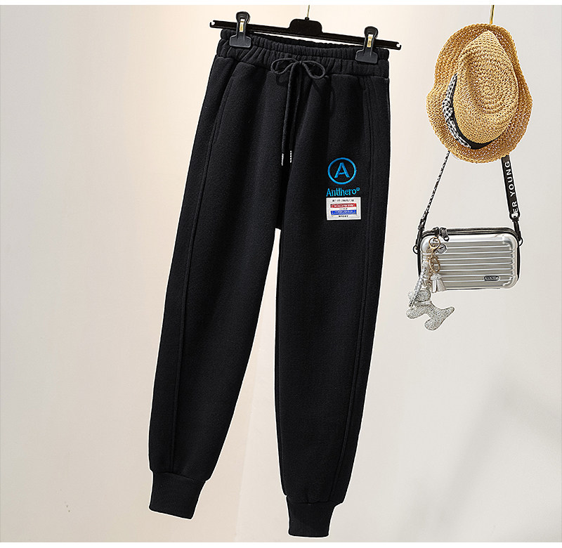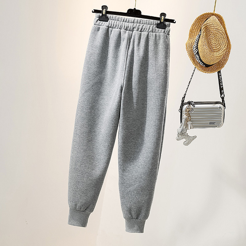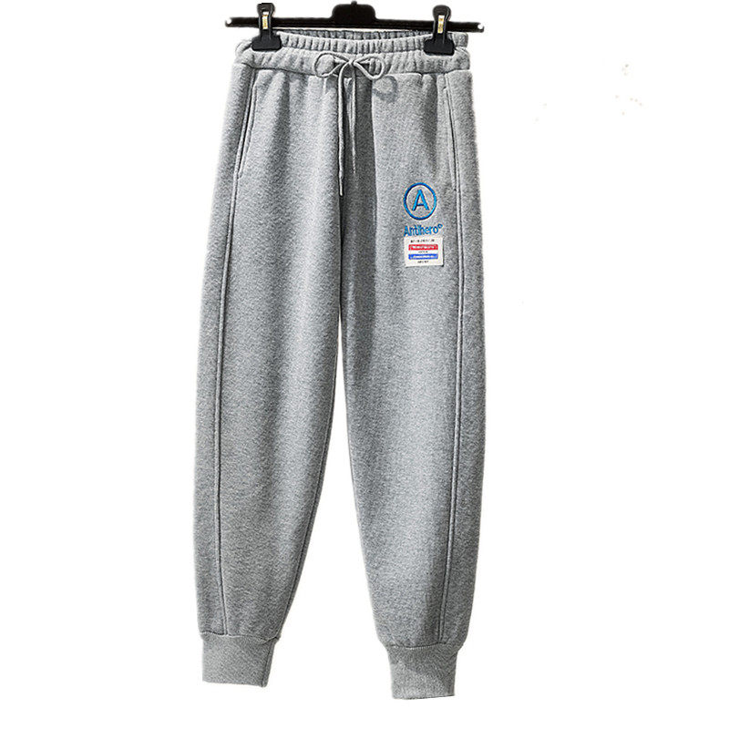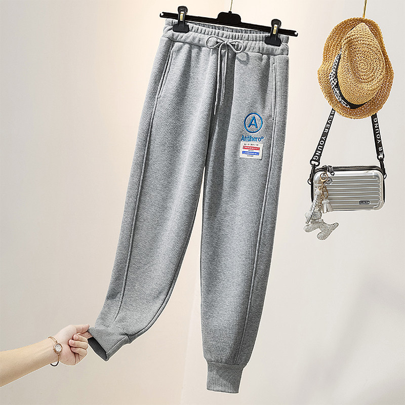 Grey sweatpants women's nine-point embroidered letter A European station 2021 spring new loose and thin leggings sports pants