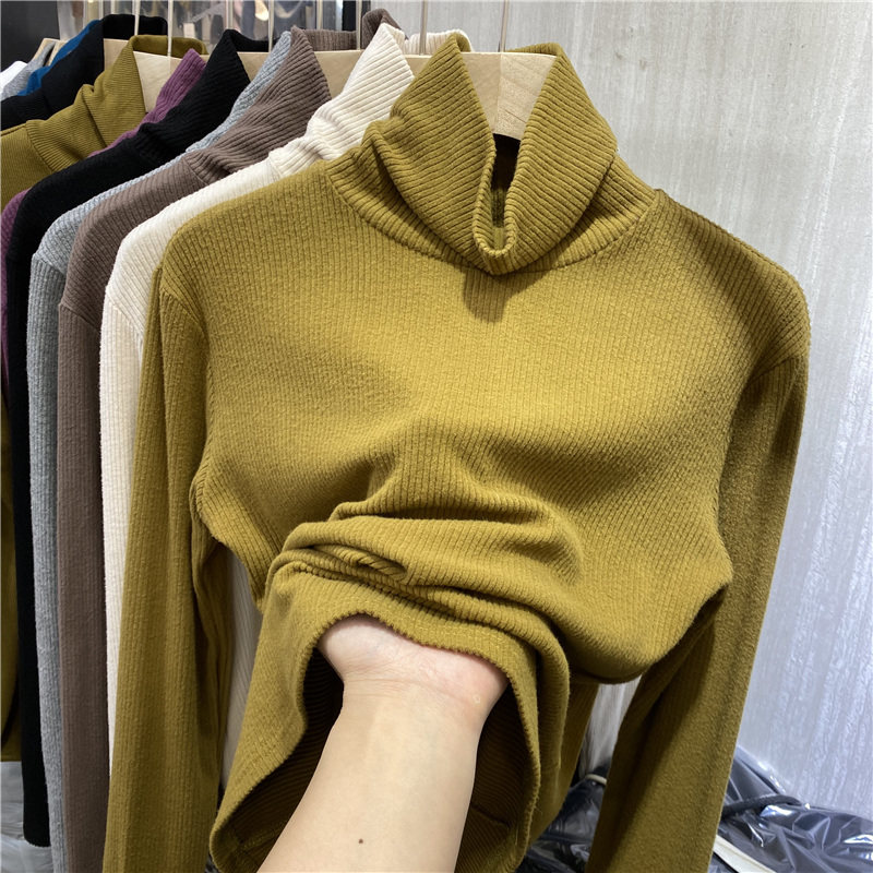 Grinding light core suede long sleeve T-shirt woman 2020 autumn winter new high collar high collar slim inner hitch bottom shirt blouse