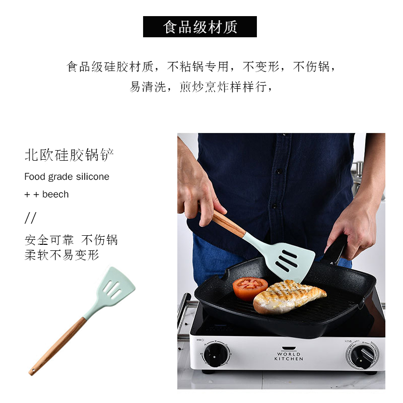 Multifunctional wooden handle silicone kitchenware non-stick pan stir-fry spatula soup spoon Home kitchen high temperature resistant 11 piece set