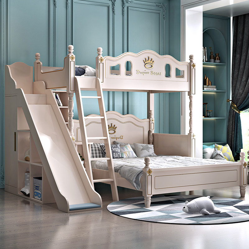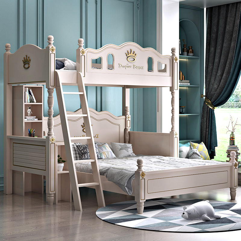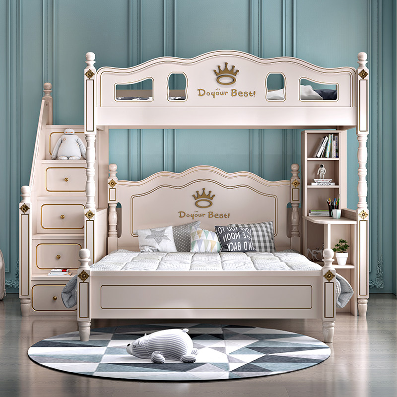Children's staggered up and down bed Double beds Small family Type solid wood High and low primary and secondary bed Siblings Transphobic Double Bunk Beds-Taobao