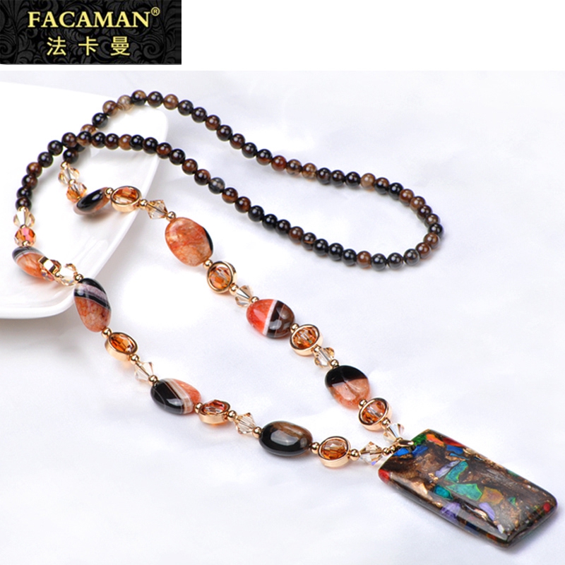 Fascarman sweater chain long version 2020 new = necklace woman crystal agate pendant brief for autumn and winter day fashion