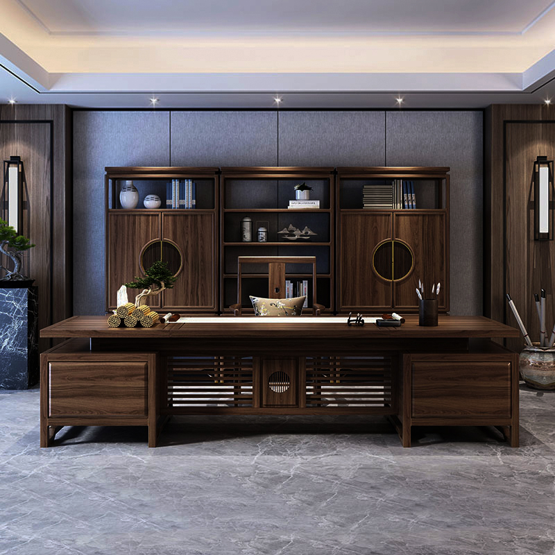 New Chinese-style boss table, president's table, Zen desk combination, atmospheric executive table, all solid wood desk furniture customization
