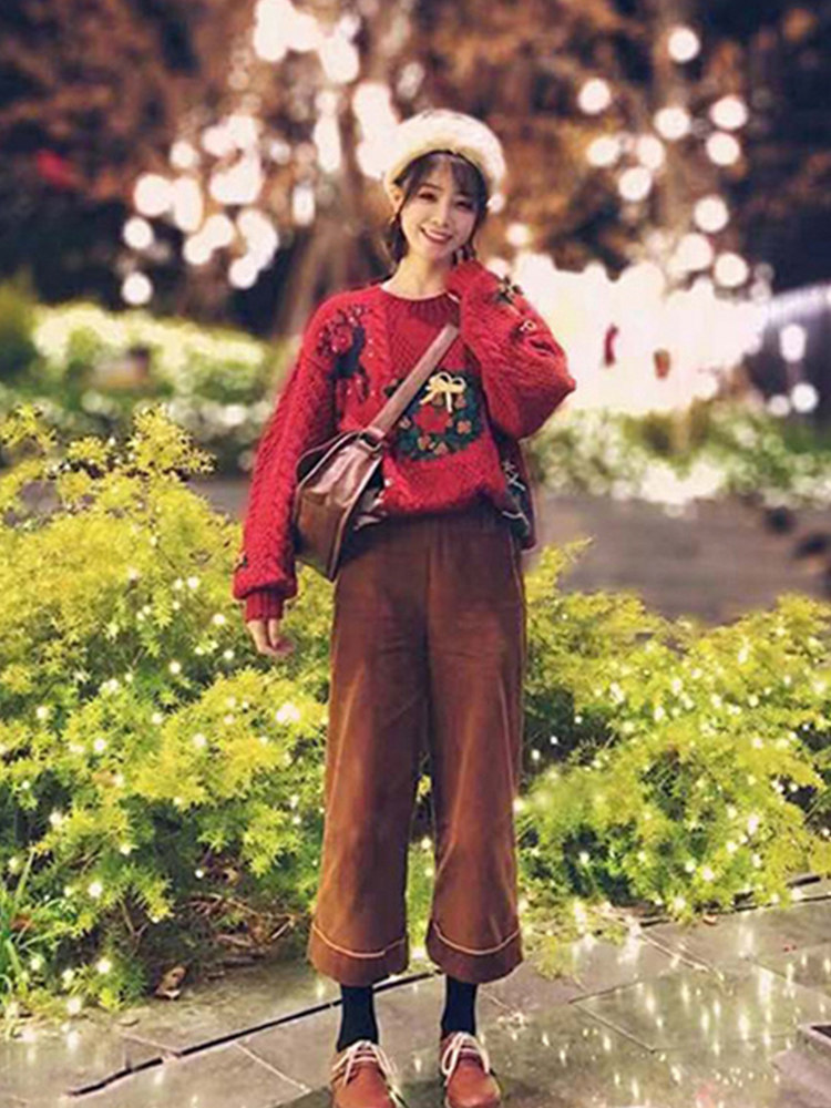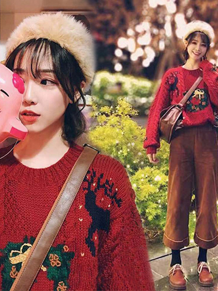 High-end red sweater women's 2022 new spring and autumn winter all-match loose outerwear explosive new year Christmas coat