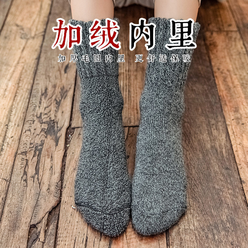 Super thick socks women's winter mid-tube wool socks thickened plus velvet warm stockings women's black loose mouth northeast cashmere cotton socks
