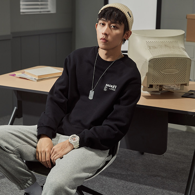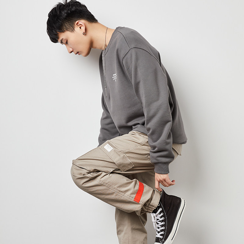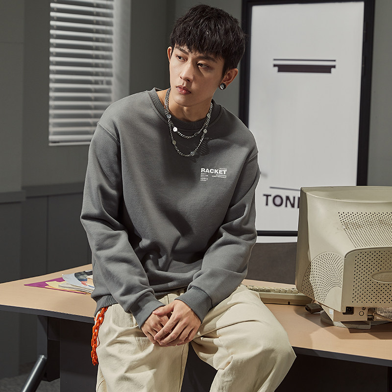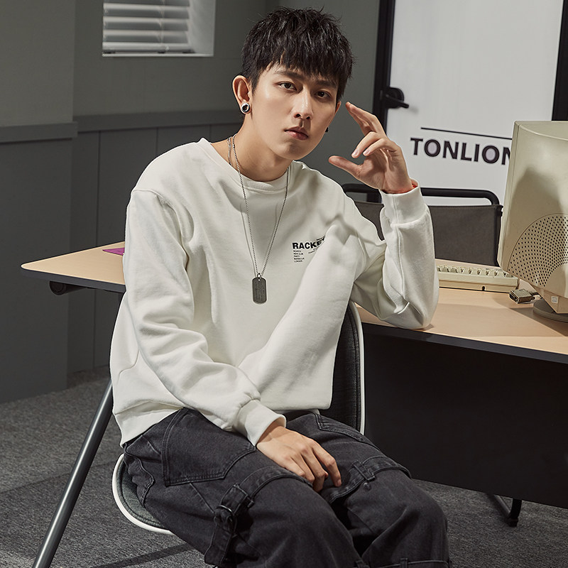 Tang Lion 2021 spring new round neck sweater male youth white loose jumper harbor style coat ins tide