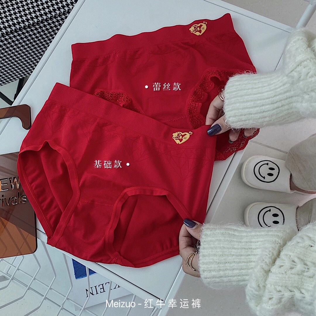 Red Bull Lucky Pants Couple Male and Female Year of the Ox Big Red Panties Female Cotton Antibacterial Crotch Mid-Waist Triangle