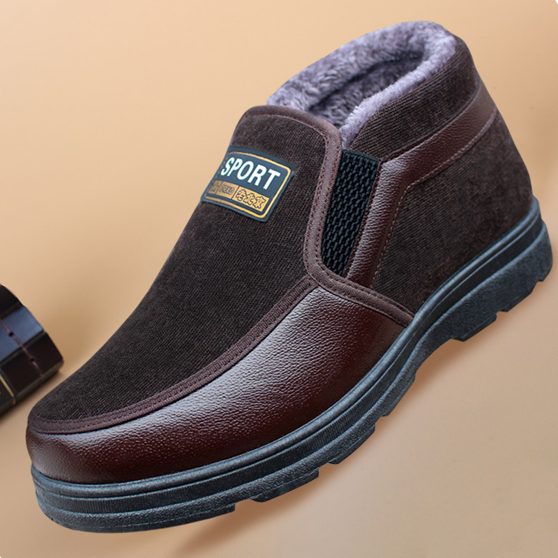 2022 winter plus velvet thick warm old Beijing cloth shoes elderly men's cotton shoes middle-aged and elderly dad shoes high-top men's shoes