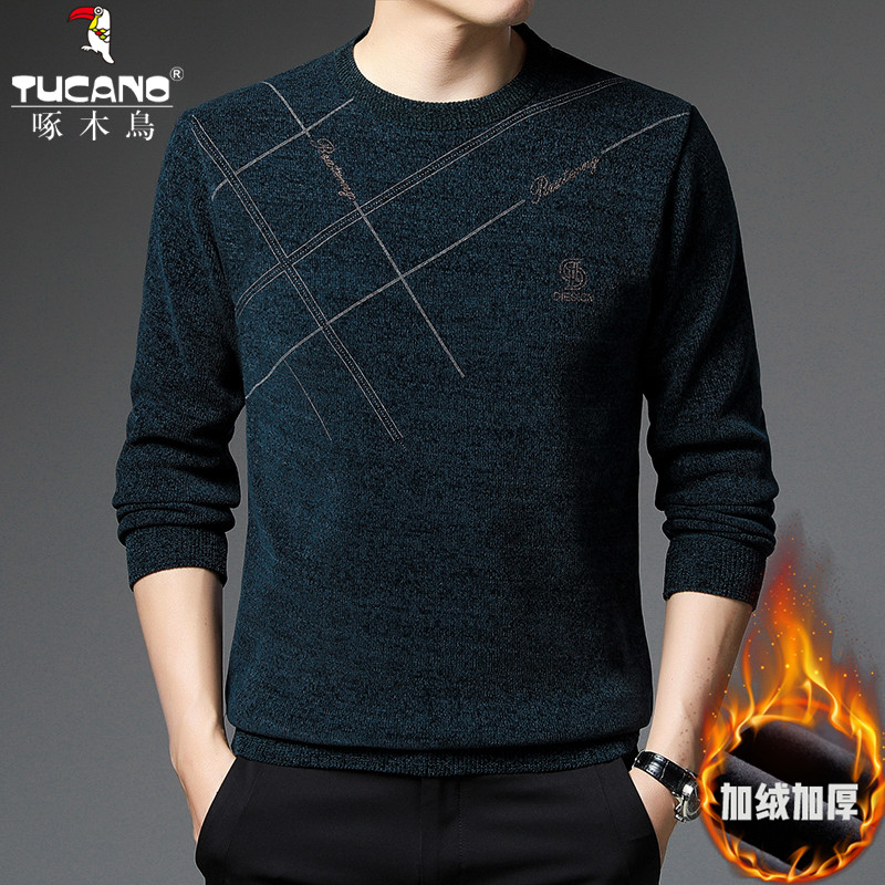 Woodpecker young men's big code round collar casual plus suede thickened thermal underwear can be outfitted with base sweatshirt blouses-Taobao