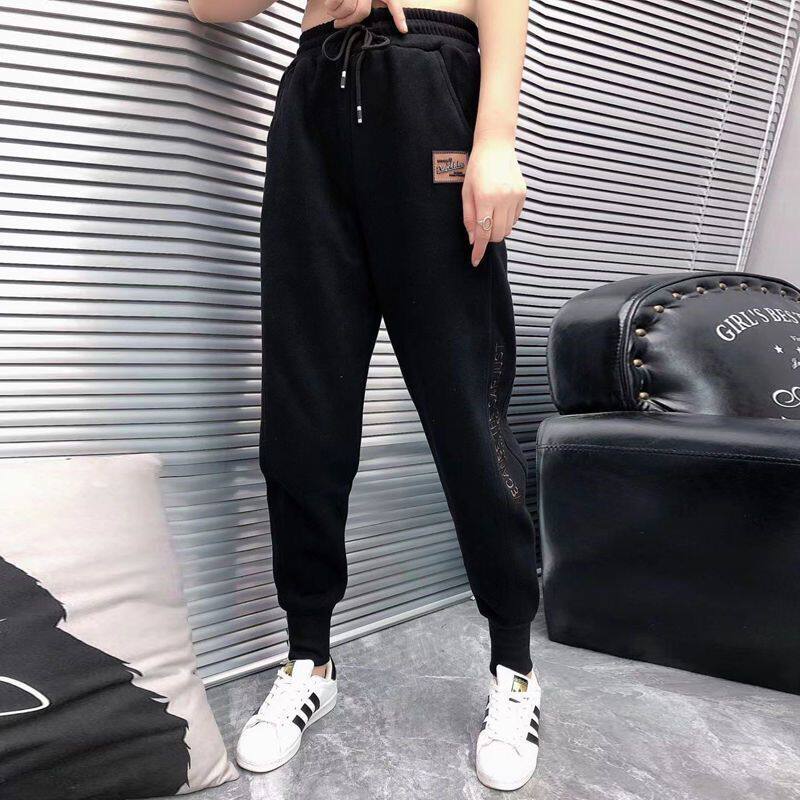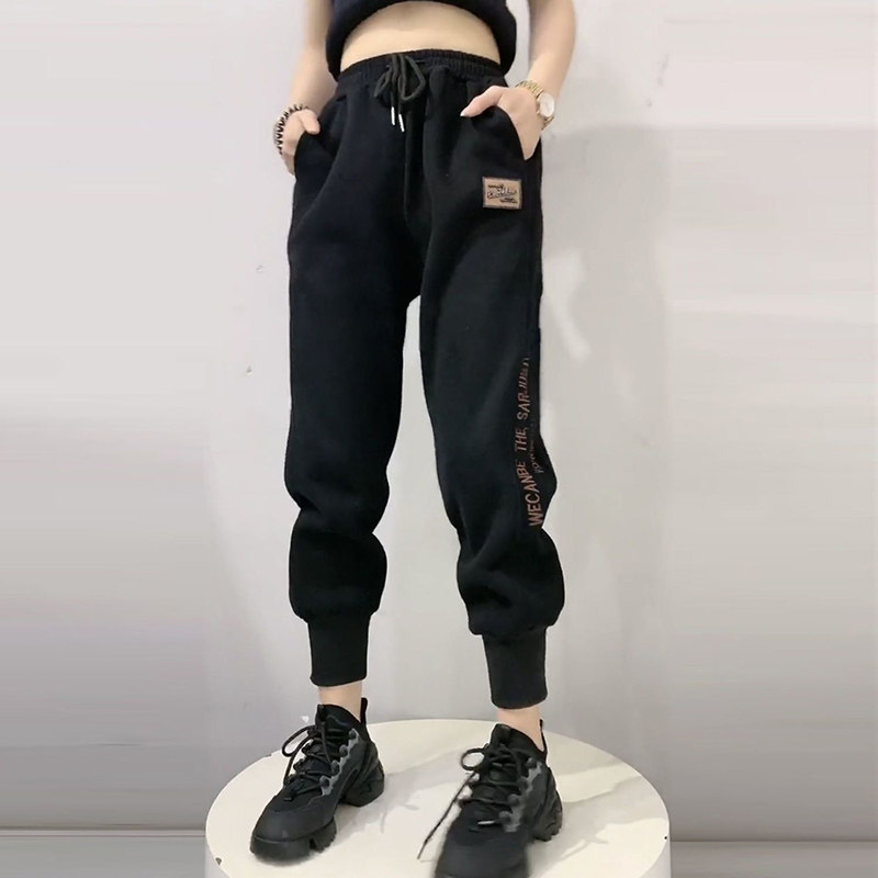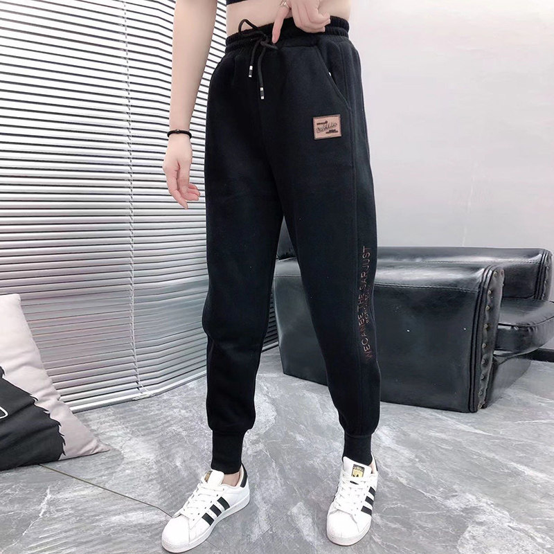 European station gray sweatpants women's embroidered nine-point pants winter plus velvet thin robe pants leggings harem casual pants tide