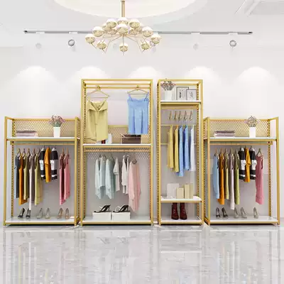 Clothing display double clothes shelf children's clothing store men and women's clothing store shelf display floor coat rack