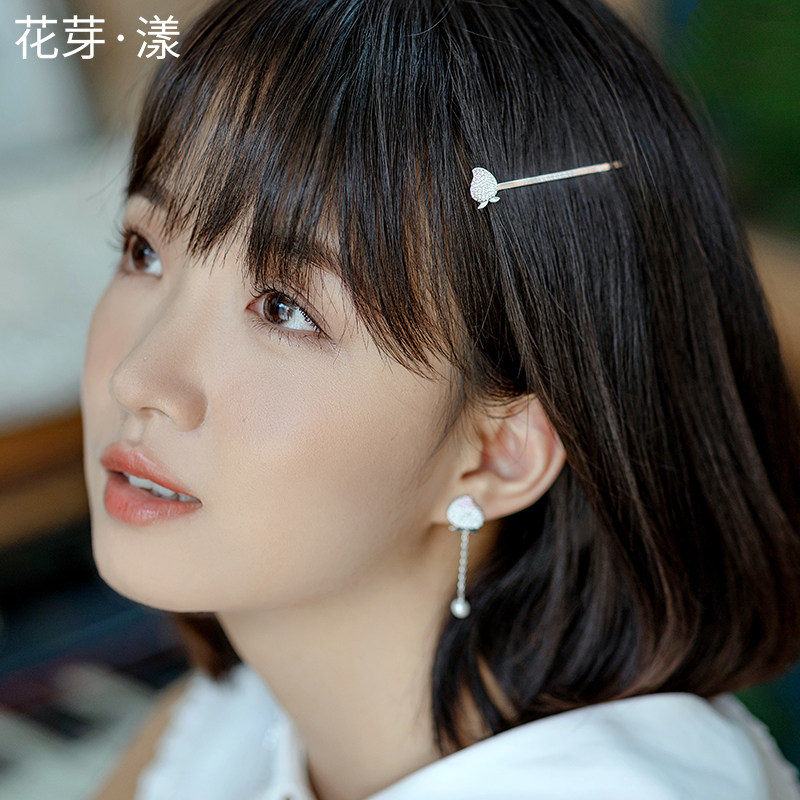 Flower Bud Original Country Wind Hair Clip Hair Accessories Side Clip Teenage Girl Ancient Wind Hanfu Accessories Small Head Decoration With a bit of a sea clip