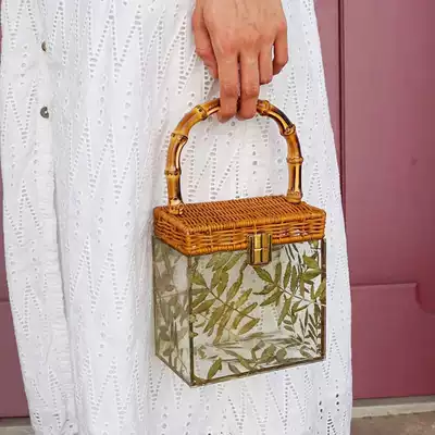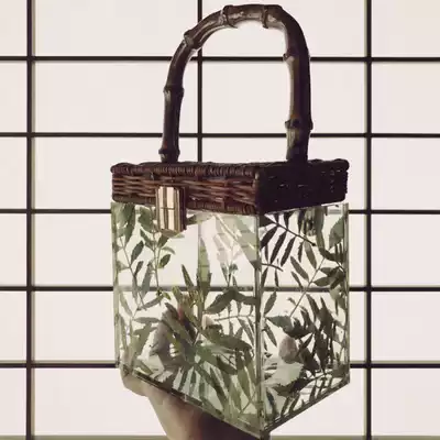Bag Hand bag can't shoulder back bamboo leaf section acrylic mobile phone Hand bag Women's Small bag hand transparent mini