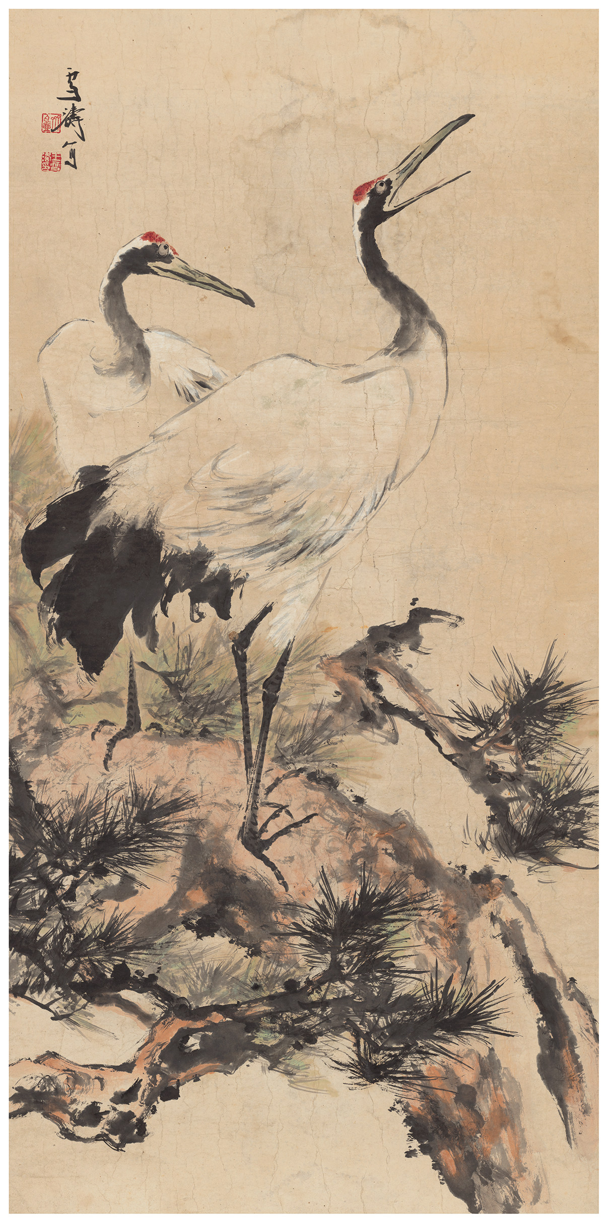 Wang Xuetao Double Crane Pine Flower and Bird Landscape Picture Picture Core Wall - shaft Wall Decoration Microspray Copy