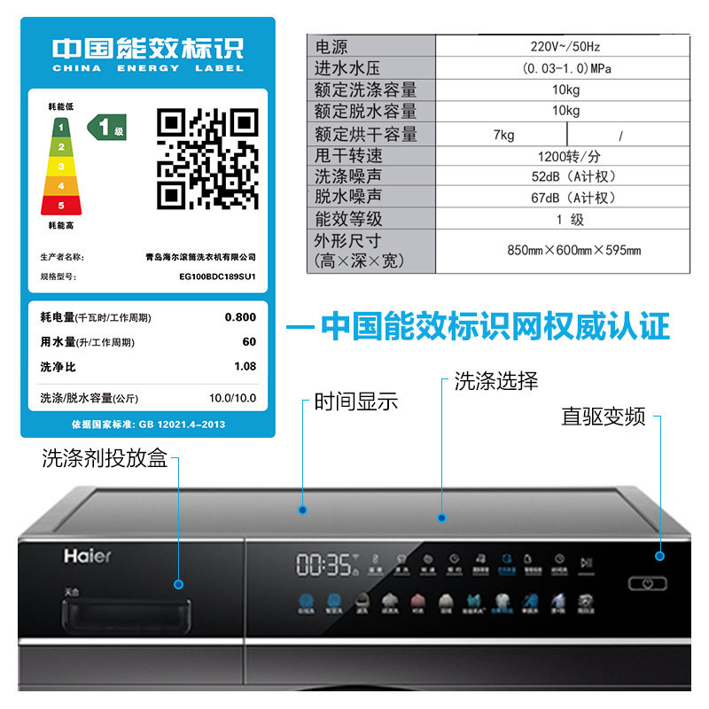 Haier Haier EG100BDC189SU1 direct drive frequency conversion 10KG automatic intelligent drop washing machine