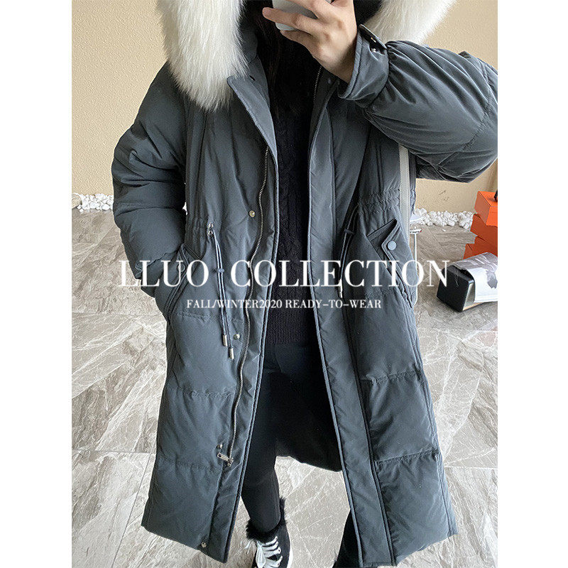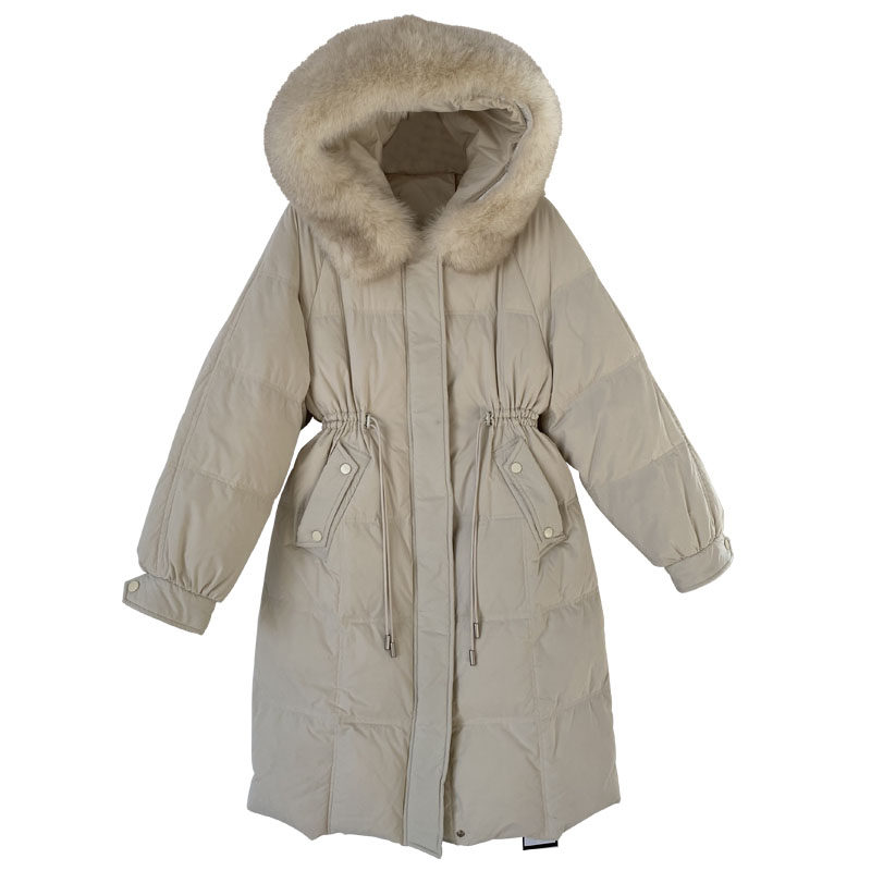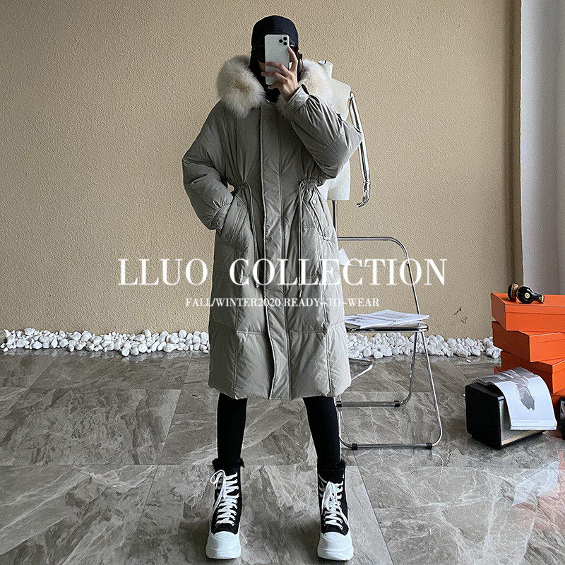 Clearance pick up leakage Zhen fox fur collar 90 large velvet waist drawstring down jacket women look thin hooded jacket winter