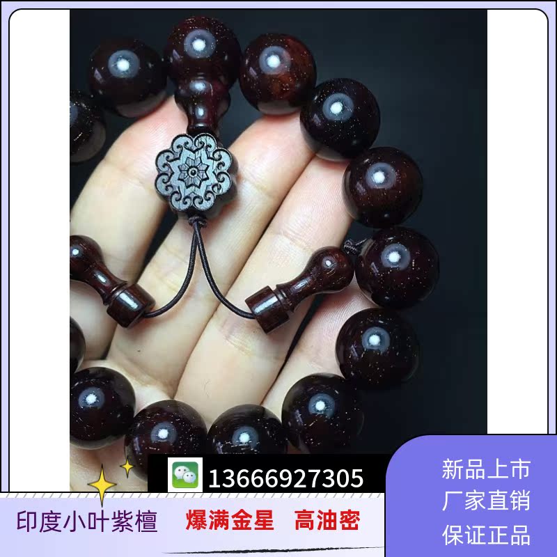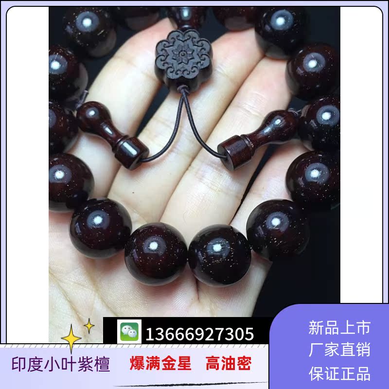 Indian Small Leaf Purple Sandalwood Detached House Old Stock Gold Venus Bracelet 1 5 * 15 Clay Material Buddha Beads High Oil Dense and Smooth Grain