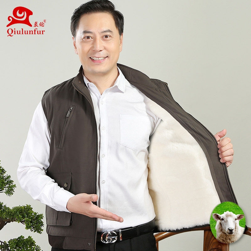 Autumn and winter outdoor waistcoat multi-pocket velvet thickened waistcoat Male middle-aged father warm vest tooling horse clip